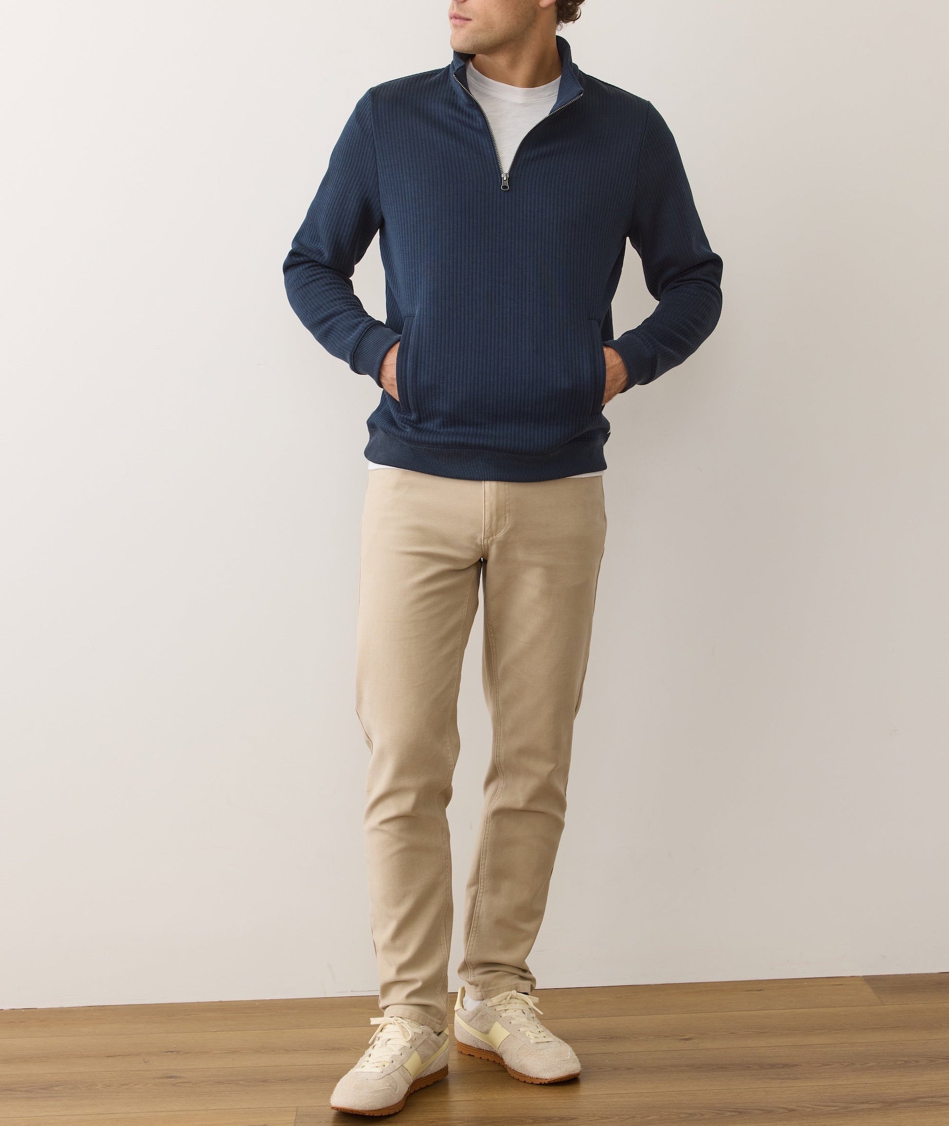 Quarter zips are the best of both worlds: the comfort of a sweatshirt, with a look that's just a touch dressier. That's extra true for this style featuring our new reinvented Corbet. It's sleek but warm, easy on-and-off, and even has hand pockets so it can pass as outerwear. Now bring on all the cold weather.
